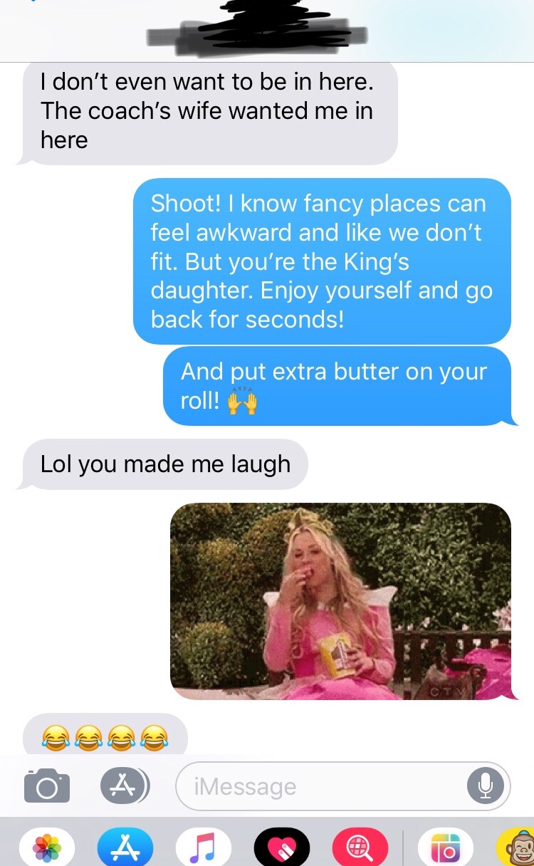 I recently had a text converstation with a friend who was attending a banquet she didn’t want to attend. Her and I are very simliar. We each appeciate a t-shirt and pair of jeans over just about any other option and can feel out of place when things get too fancy. Neither of us know what to do with extra attention and feel most comfortable cheering on someone else. And both of us have believed lies at times that make us feel unworthy to show up in a room.